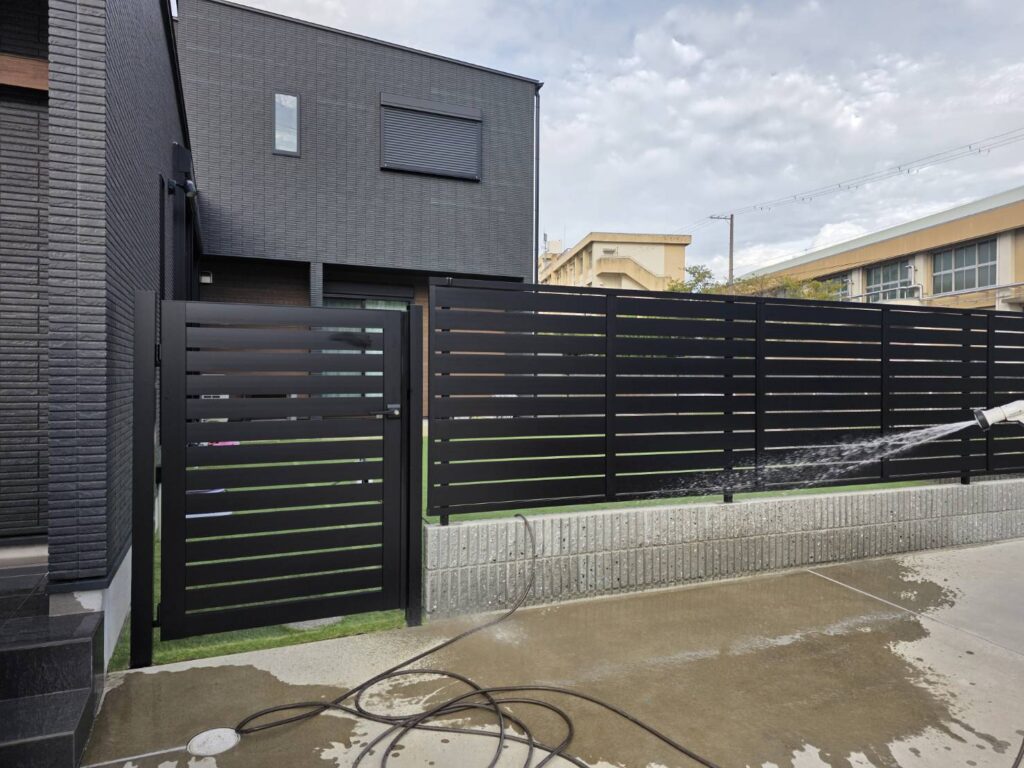 落ち着いたトーンのフェンスが建物の外観と調和し、ナチュラルで温かみのある印象に仕上がりました。