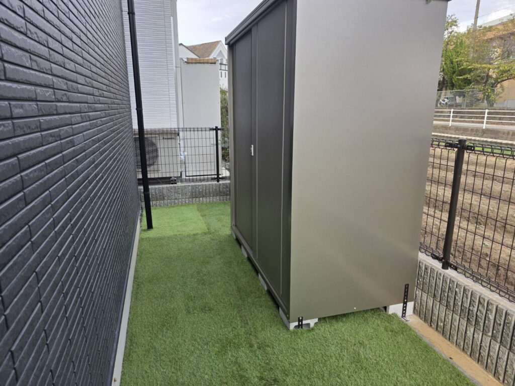 ガーデニング用品やお子様の外遊び道具などを収納できるスペースとして、実用性を重視した設計です。
