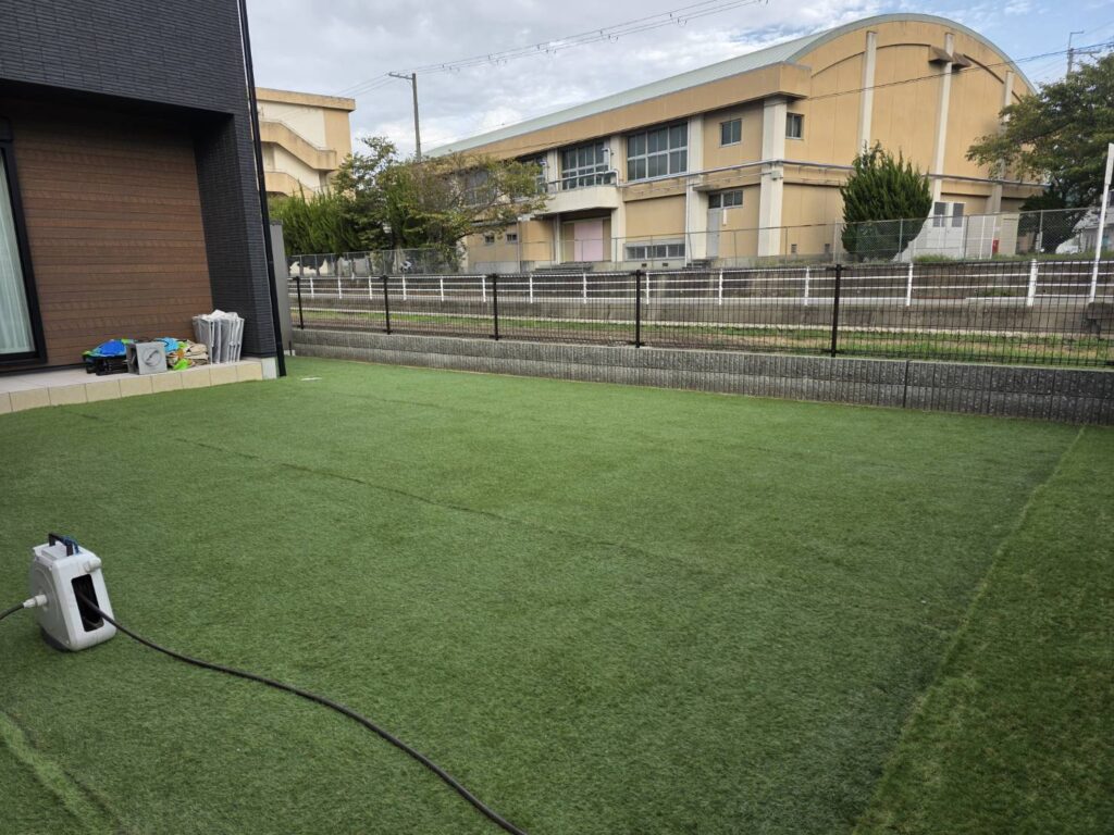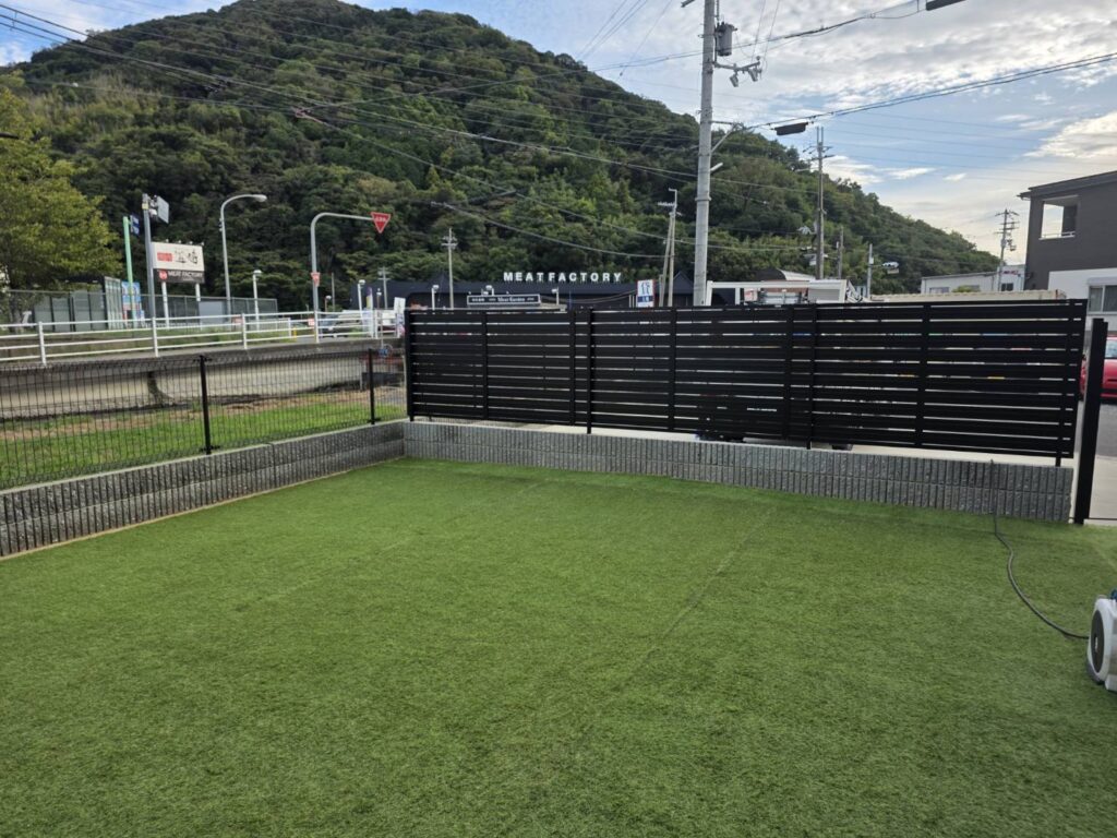 和歌山市 庭リフォーム外構 人工芝、目隠しフェンス、門扉、物置