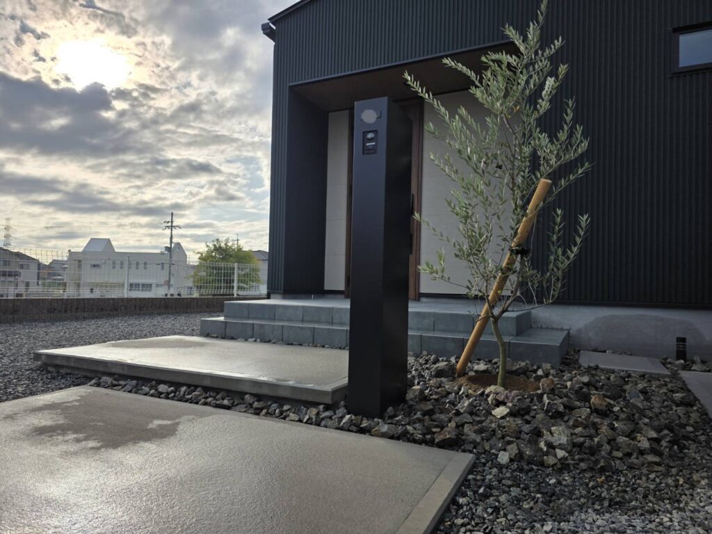 合同会社 village gardenが手掛けた現場で、新築住宅に合わせた外構一式の施工を行いました。