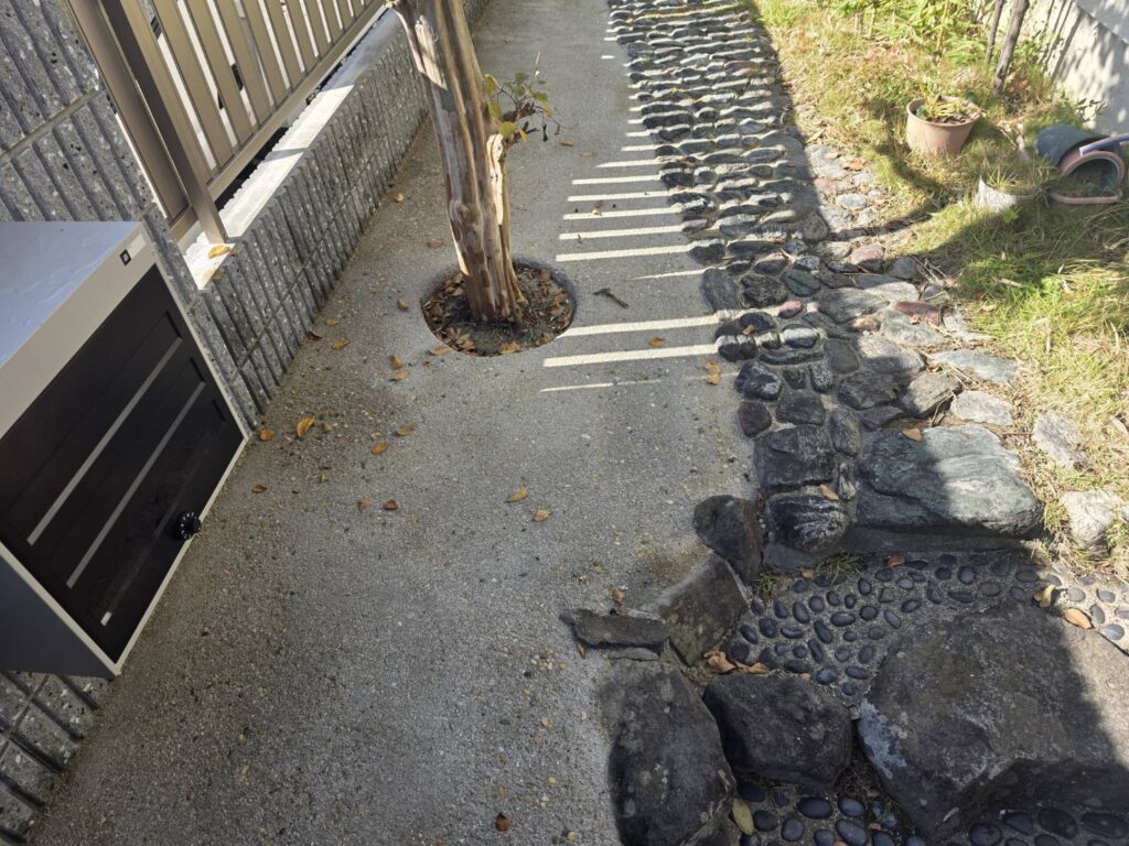 アプローチ部分も石畳が敷かれていましたが、石と石の間に隙間があり、雑草が繁茂しやすい状態でした。