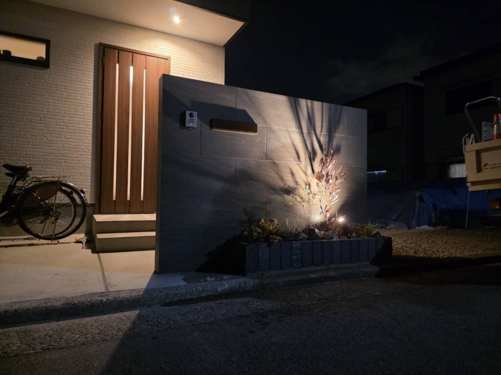 夜に帰宅した時、美しくライトアップされた外構が出迎えてくれる喜びは格別です。