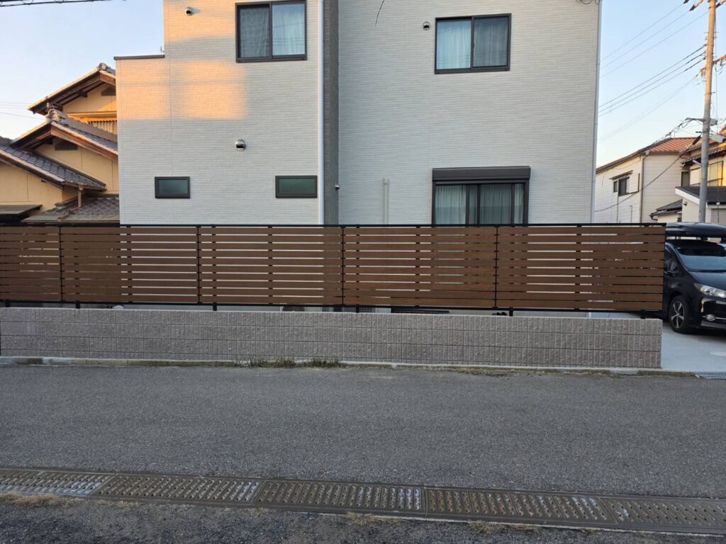 古いブロック塀を撤去した後は、モダンなデザインの目隠しフェンスを設置しました。
